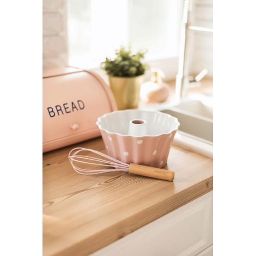 Forma do pieczenia babki w kolorze różowym w białe kropki firmy Isabelle Rose. Foremka sama w sobie stanowi przeuroczą dekorację kuchni lub wspaniały prezent dla osób ceniących piękno i wysoką jakość przedmiotów codziennego użytku. Stworzy wyjątkowy zestaw z pozostałymi seriami ceramiki Isabell Rose.
