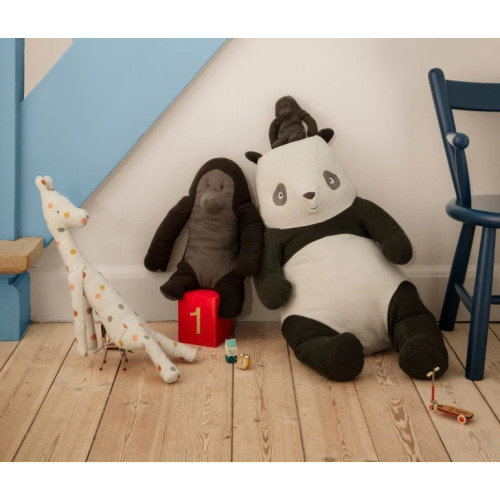 Gorilla w rozmiarze medium z kolekcji Safari Friends od Maileg. Przyjaciele Safari są wykonane z najdelikatniejszego materiału i występują w pięknych kolorach. Mogą siedzieć samodzielnie dzięki fasolkom na spodzie i tylko czekają, aż podejdziesz i je przytulisz.