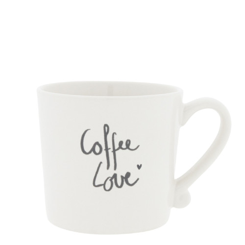 Biały kubek z napisem Coffee Love holenderskiej marki Bastion Collections. Picie kawy lub herbaty z tej pięknej ceramiki stanie się nie tylko doznaniem smakowym, ale i ucztą dla oczu. Kubek sam w sobie stanowi przeuroczą dekorację kuchni lub wspaniały prezent dla osób ceniących piękno i wysoką jakość przedmiotów codziennego użytku. Stworzy wyjątkowy zestaw z pozostałą ceramiką marki Bastion Collections.