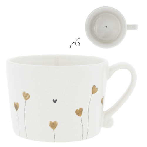 Biały kubek Hearts in bloom holenderskiej marki Bastion Collections. Picie kawy lub herbaty z tej pięknej ceramiki stanie się nie tylko doznaniem smakowym, ale i ucztą dla oczu. Kubek sam w sobie stanowi przeuroczą dekorację kuchni lub wspaniały prezent dla osób ceniących piękno i wysoką jakość przedmiotów codziennego użytku. Stworzy wyjątkowy zestaw z pozostałą ceramiką marki Bastion Collections.