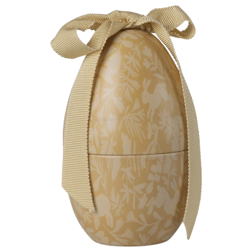 Wielkanocne jajko EASTER EGG Small CREAM YELLOW firmy Maileg. Wielkanocne jajko Maileg ma nowy nadruk all over. Przyjrzyj się i poszukaj różnych zwierzątek we wzorze. Duża, miękka kokarda na górze nadaje jajku ekskluzywny wygląd.