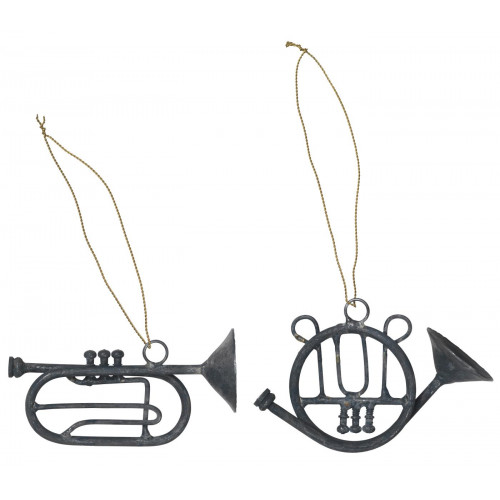 Metalowe zawieszki trąbki w kolorze szarym na sznureczku duńskiej marki Ib Laursen. Urocza dekoracja na Święta Bożego Narodzenia. Idealne na choinkę lub świąteczny stroik, cudownie wyglądają zawieszone na gałązce. Zawieszki same w sobie stanowi przeuroczą dekorację lub wspaniały prezent dla osób ceniących piękno i wysoką jakość przedmiotów codziennego użytku. Stworzy wyjątkowy zestaw z pozostałymi produktami marki Ib Laursen.