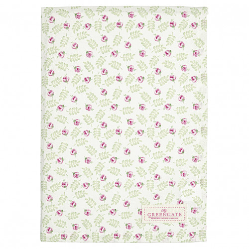 Bawełniana ściereczka kuchenna w kolorze biało-różowo-zielonym ozdobiona kwiatowym wzorem firmy Green Gate. Praktyczny i piękny dodatek do każdej kuchni. Ściereczka kuchenna sama w sobie stanowi przeuroczą dekorację lub wspaniały prezent dla osób ceniących piękno i wysoką jakość przedmiotów codziennego użytku. Stworzy wyjątkowy zestaw z pozostałymi seriami marki Green Gate.