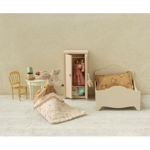 Księżniczka PRINCESS MOUSE BIG SISTER od Maileg. Prawdziwa księżniczka mysz w rozmiarze starszej siostry. Jest ubrana w swoją najlepszą sukienkę z pięknymi detalami i złotą koroną. Idealnie pasuje do zamku Maileg.