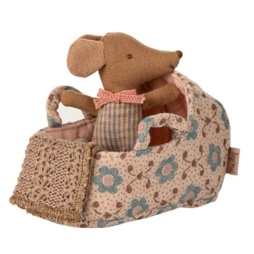 Nosidełko CARRY COT BABY MOUSE ROSE z mięciutkim kocykiem dla myszek i królików duńskiej firmy Maileg. Małe przenośne łóżko dla Twoich miękkich przyjaciół - mały pluszowy króliczek i mali przyjaciele Safari pasują idealnie. Z tą gondolą łatwo zabrać ze sobą swojego przyjaciela. Twój przyjaciel będzie spał ciasno z miękką poduszką i pod ciepłym dzianinowym kocem. Ponadczasowa zabawka, która posłuży nie tylko twojemu dziecku ale i twoim wnukom. Wspaniały prezent dla osób ceniących piękno i wysoką jakość przedmiotów codziennego użytku. Stwórz wyjątkowy zestaw z pozostałymi seriami marki Maileg.