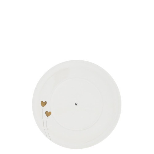 Talerzyk pod kubeczek w kolorze białym ozdobiony złotymi serduszkami holenderskiej firmy Bastion Collections. Uroczy talerzyk do serwowania pysznych, słodkich deserów lub jako spodeczek pod filiżankę. Talerz sam w sobie stanowi przeuroczą dekorację kuchni lub wspaniały prezent dla osób ceniących piękno i wysoką jakość przedmiotów codziennego użytku. Stworzy wyjątkowy zestaw z pozostałymi seriami ceramiki Bastion Collections.