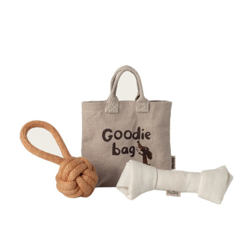 Ten zestaw zabawek to must have dla Twojego pluszowego szczeniaka. Zawiera materiałową kość i węzeł, które z pewnością zapewnią Twojemu psu rozrywkę na wiele godzin. Kość zawiera metalowy guzik, dzięki czemu pies może ją nosić w pyszczku.