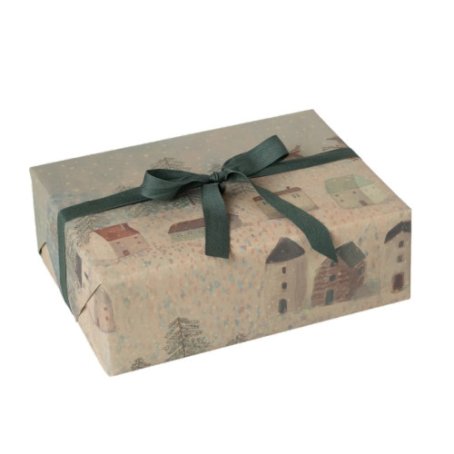 Papier do pakowania prezentów SANTA IS COMING z kolekcji ZIMA2025 ozdobiony kolorowymi rysunkami duńskiej firmy Maileg. Uroczy papier do pakowania prezentów, który sprawi że twój prezent będzie najpiękniejszy. Dekoracja tego opakowania prezentowego rozpoczęła się od ręcznie malowanych rysunków Dorthe Mailil. Po obróbce graficznej opakowanie prezentowe nabrało pięknego wyrazu, a atmosfera świąt Bożego Narodzenia jest dopełniona. Dodaj piękną, miękką wstążkę jako ostatni akcent. Papiery marki Maileg są niepowtarzalną oprawą dla upominku. Z dumą wręczysz go mamie, cioci, bratu, siostrze, kuzynce, ojcu czy znajomym.