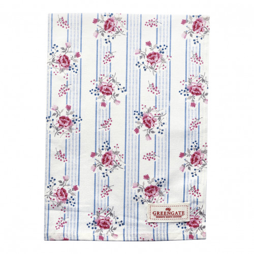 Bawełniana ściereczka kuchenna w kolorze biało-czerwono-błękitnym ozdobiona kwiatowym wzorem firmy Green Gate. Praktyczny i piękny dodatek do każdej kuchni. Ściereczka kuchenna sama w sobie stanowi przeuroczą dekorację lub wspaniały prezent dla osób ceniących piękno i wysoką jakość przedmiotów codziennego użytku. Stworzy wyjątkowy zestaw z pozostałymi seriami marki Green Gate.