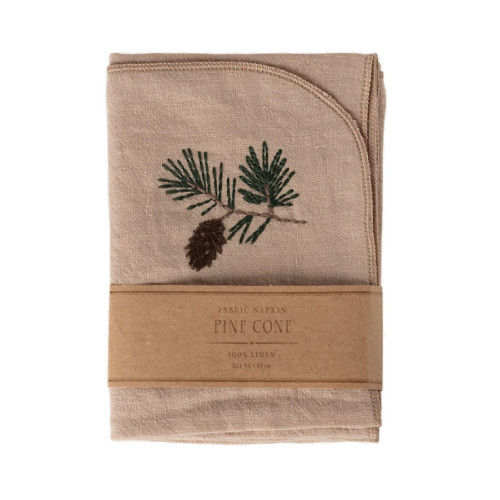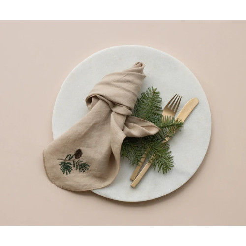 Lniana serwetka z kolekcji PINE CONE firmy Maileg. Na każdym świątecznym stole znajdzie się piękna serwetka. Ta serwetka jest wykonana z miękkiego lnu i ozdobiona pięknym haftem. Ilustracja została ręcznie narysowana przez Dorthe Mailil.