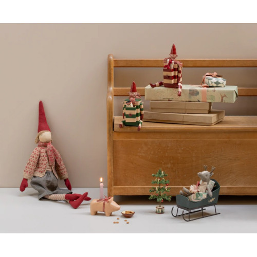 Świecznik Świnka Drewniana Czerwona Mała Maileg