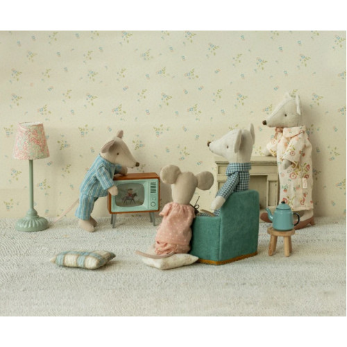 Ulepsz mysi domek telewizorem, przy którym rodzina może spędzać godziny. Drewniana ramka dodaje przytulności wnętrzu. Niech zacznie się opowieść – wyobraź sobie, co widać na ekranie.