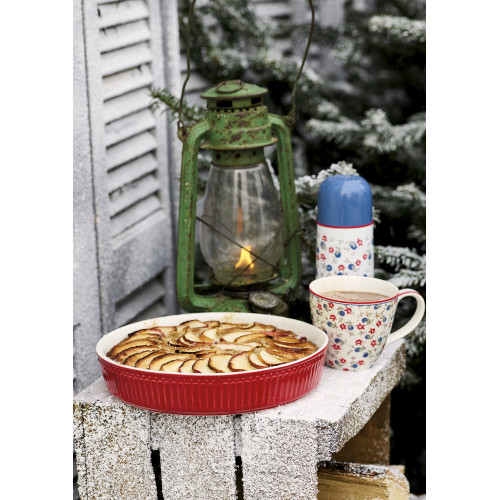 Termos w kolorze biało-czerwono-niebieskim ozdobiony kwiatowym wzorem firmy Green Gate. Praktyczny i piękny niezbędnik w podróży, na piknik czy wycieczkę. Picie kawy lub herbaty z tej pięknej duńskiej porcelany stanie się nie tylko doznaniem smakowym, ale i ucztą dla oczu. Termos sam w sobie stanowi przeuroczą dekorację kuchni lub wspaniały prezent dla osób ceniących piękno i wysoką jakość przedmiotów codziennego użytku. Stworzy wyjątkowy zestaw z pozostałymi seriami porcelany Green Gate.