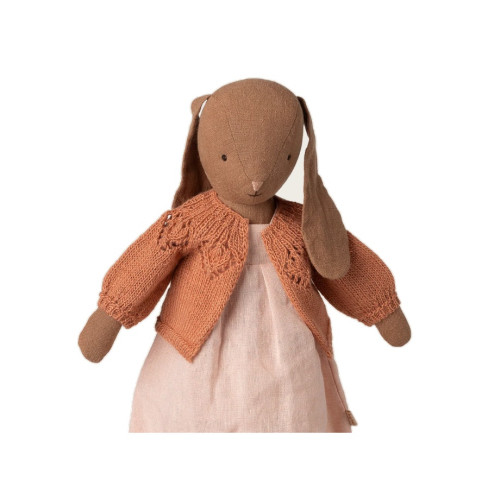 Dzianinowy kardigan KNITTED CARDIGAN SIZE 3 VINTAGE ROSE na chłodne dni to must-have w każdej garderobie. Ten miękki model pasuje do królików/bunny w rozmiarze 3 i dopełni każdą stylizację. Dodaj ten dodatkowy zestaw ubrań do garderoby twojego króliczka, aby wydłużyć opowiadanie historii i scenę zabaw.