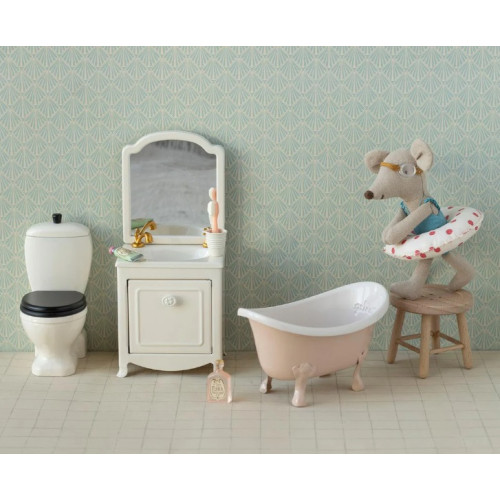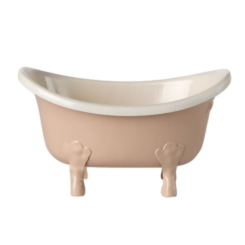 Wanna wolnostojące w kolorze różowym w stylu retro z kolekcji WIOSNA 2026 duńskiej firmy Maileg. Wszystkie myszki Maileg od czasu do czasu potrzebują kąpieli. Ta vintage wanna idealnie pasuje do kolekcji łazienkowych akcesoriów dla myszek.