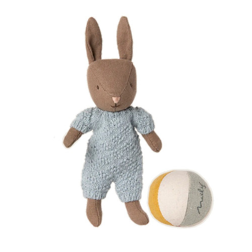 Zestaw RABBIT Set Micro Brown Blue od Maileg. Idealny zestaw prezentowy na długie godziny opowiadań historii. Zawiera małą piłkę i miękkiego króliczka w rozmiarze mikro z magnesami w rączkach. Wszystko idealnie do siebie pasuje i stanowi świetny początek każdej kolekcji króliczków.